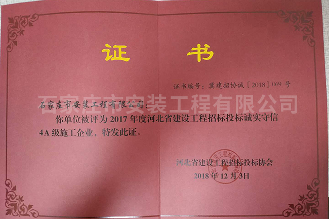 2017年度河北省建設(shè)工程招標(biāo)投標(biāo)誠實守信4A級施工企業(yè)